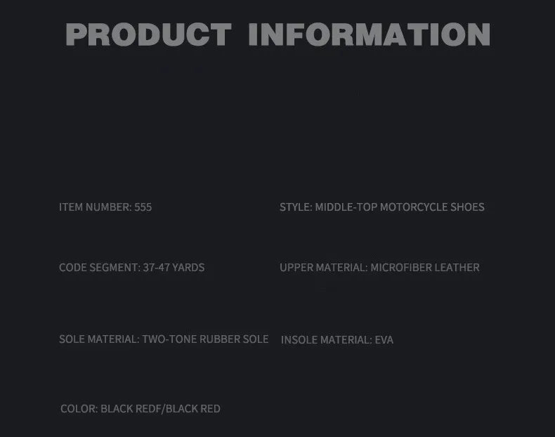 Note: High-quality protective gear is essential when riding a motorcycle. These shoes offer professional protection without compromising on style.